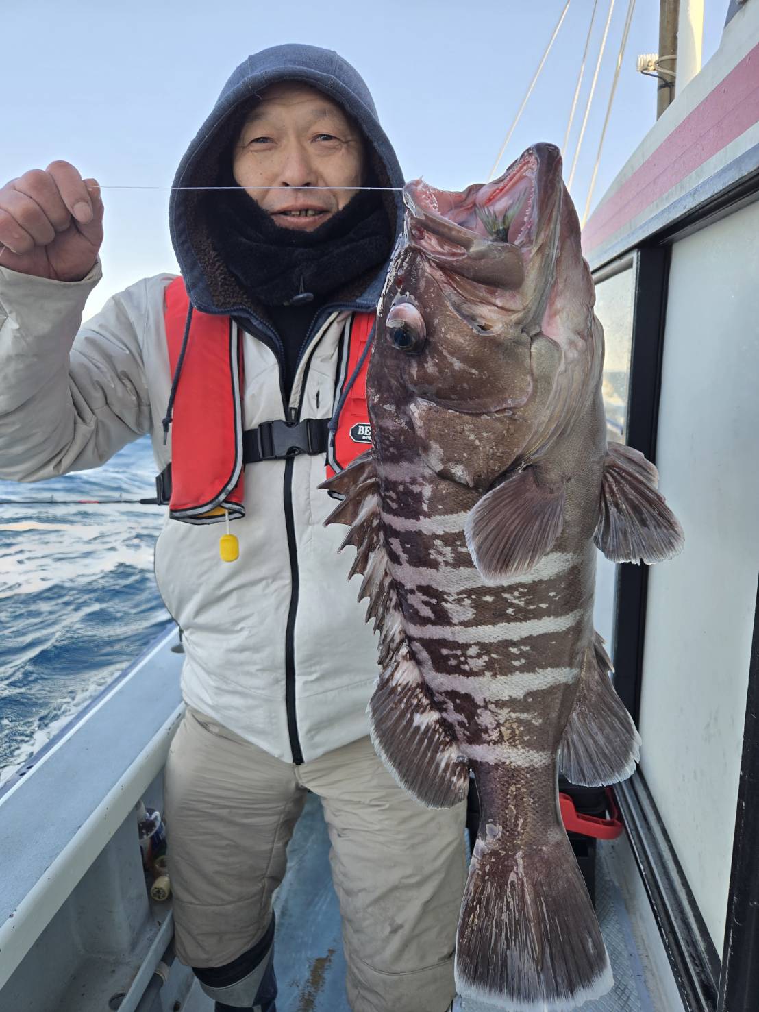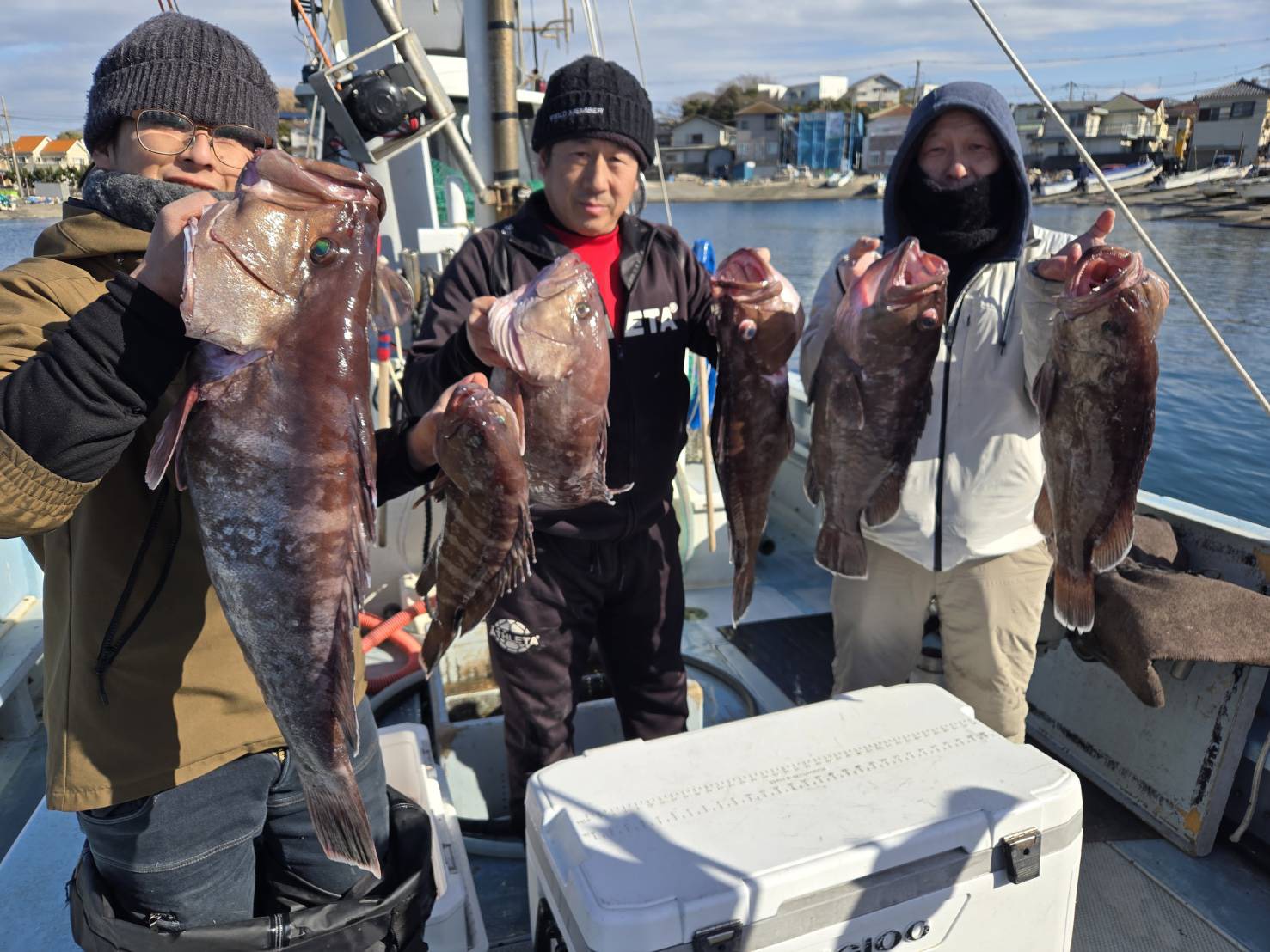 マハタの2~5.4キロを船中6本、カンコの0.5~1.2キロを2~3本。